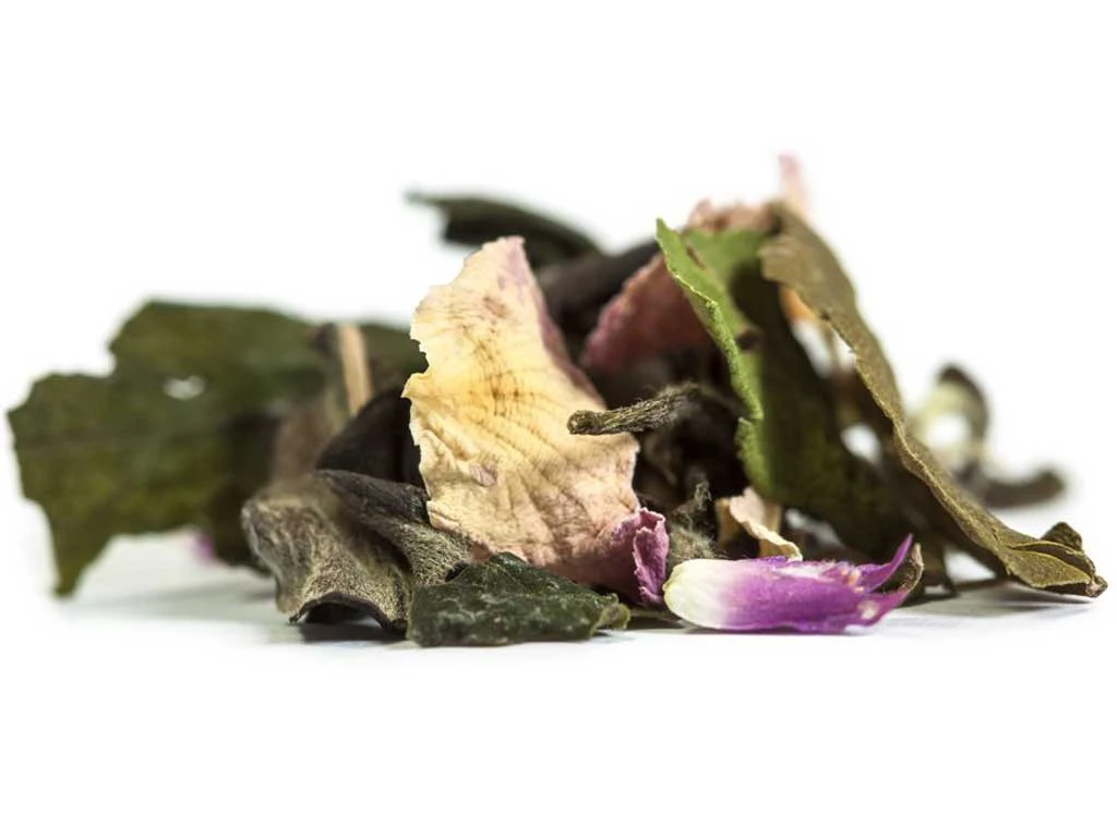 Thé blanc*, thé vert au jasmin*, lemongrass*, tulsi*, réglisse*, pétales de rose*, amarante*. * Issu de l’agriculture biologique.