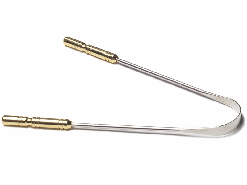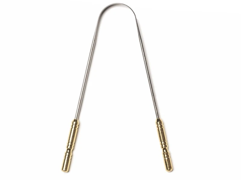 Gratte langue en inox de haute qualitĂ©. IdĂ©al pour enlever la pĂąte blanche (Ăma) produite par la flore bactĂ©rienne de la surface de la langue. Le gratte langue est employĂ© en Inde depuis plus de 6000 ans pour la pratique du « Hrid dhauti ».