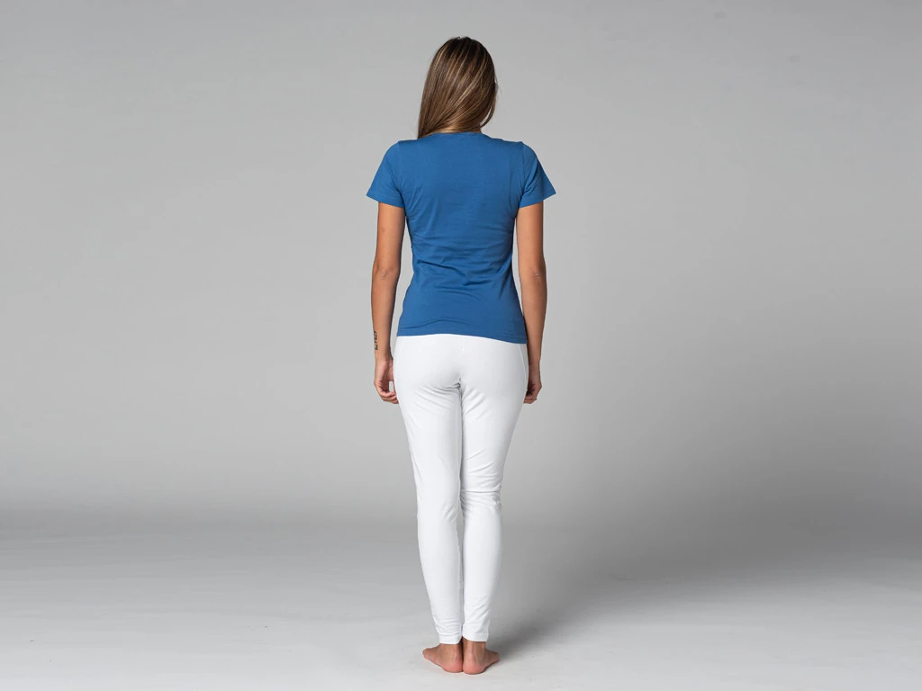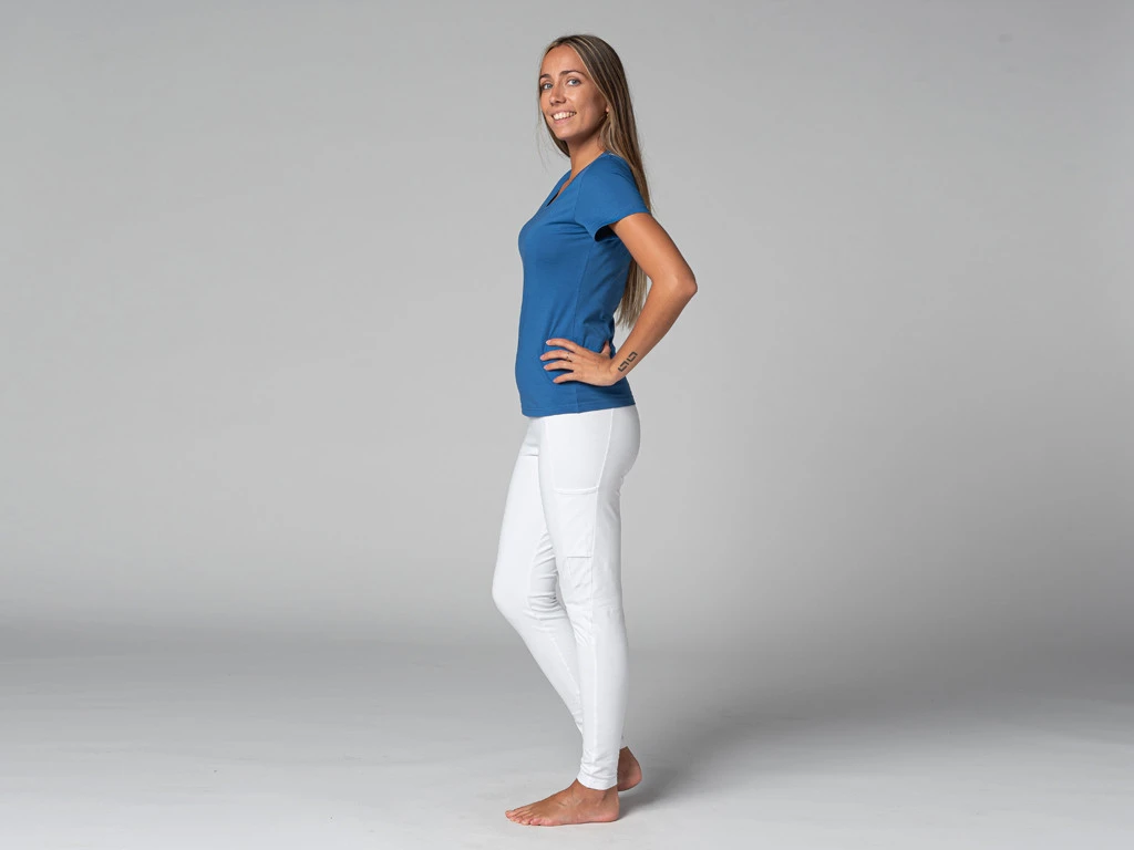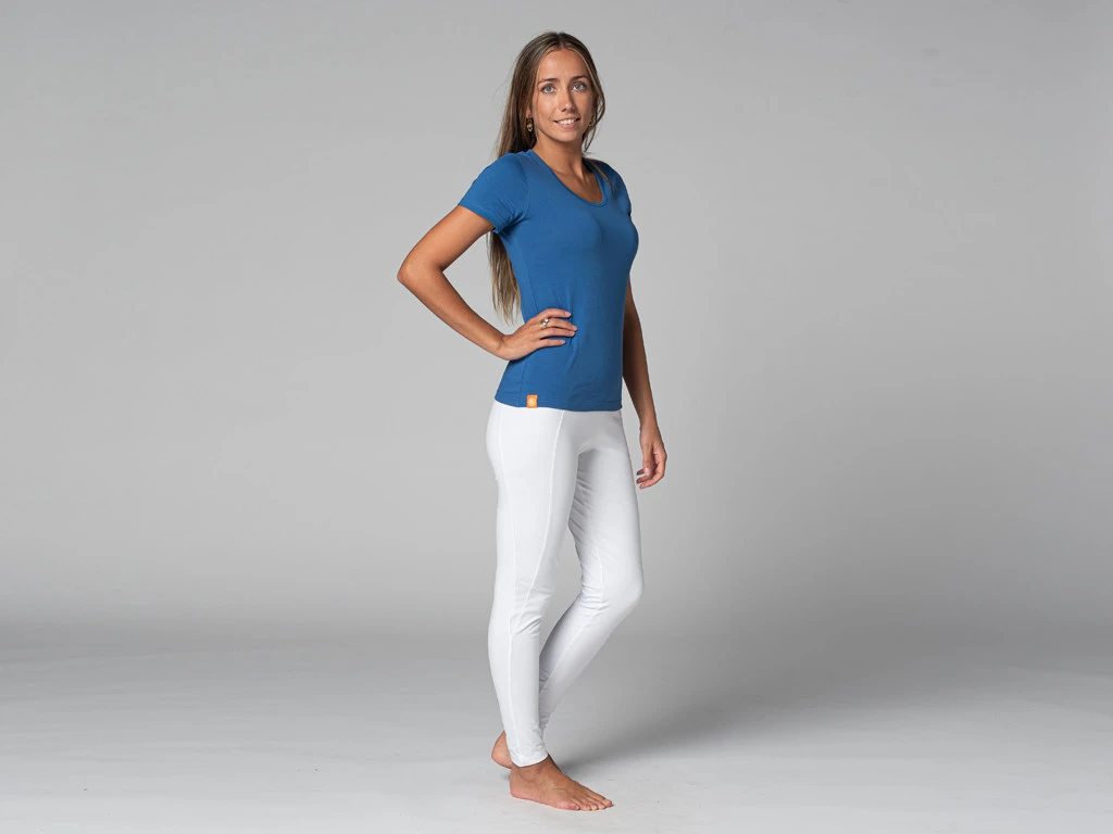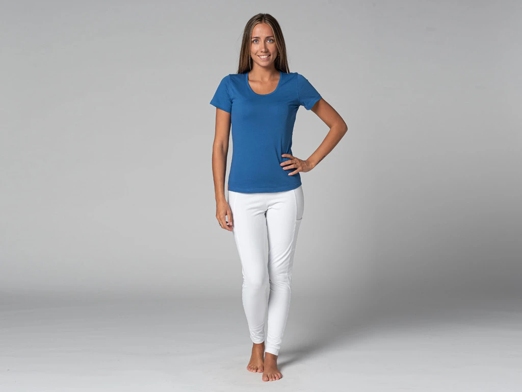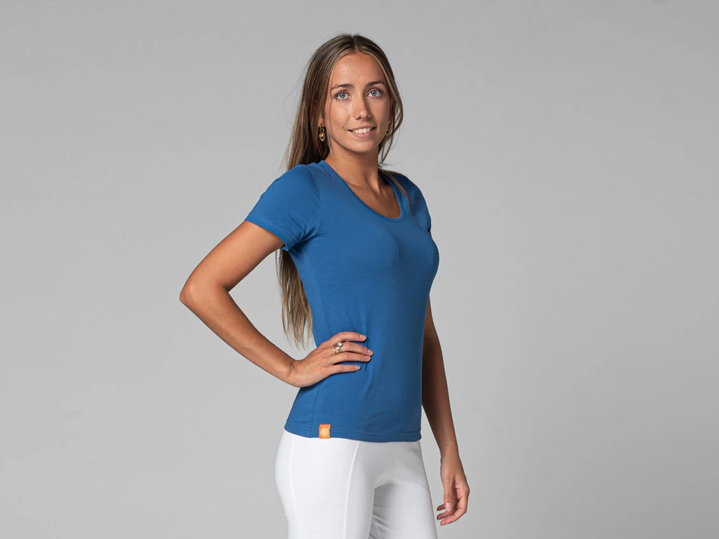 T-shirt Tara, manches courtes, col large, 95 % coton certifié biologique par OCS 100 (Organic Content Standard) et 5% Élasthanne.